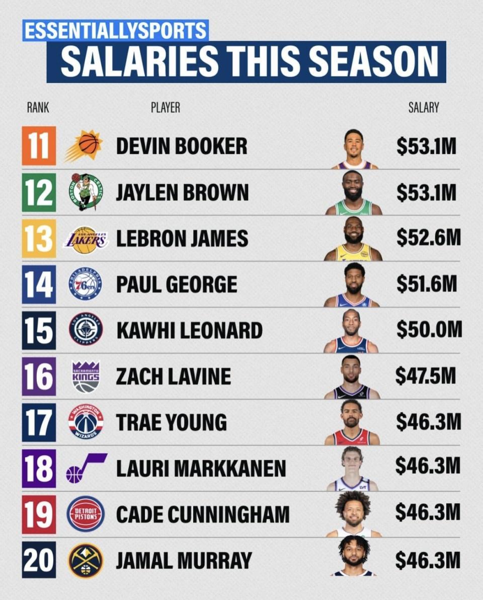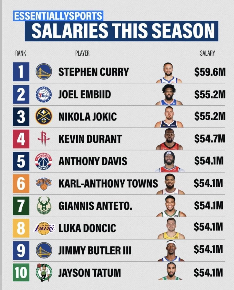 sofascore中文版下载-NBA本赛季球员年薪榜发布!库里第一 4.12亿元!詹姆斯跌出前十